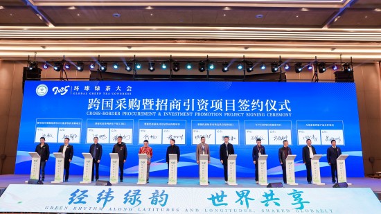 当天主会场开展了环球绿茶品牌发展交流会,一系列扎实举措勾勒出全球绿茶产业协同发展的新局面。婺源县副县长万斌发布了婺源绿茶饮料、茉莉抹茶护肤品等婺源茶新产品。新华社江西分社分党组成员张敏发布了《世界绿茶产业地图(中英版)》。这份地图由中国经济信息社汇聚高端智库资源,精心编撰,系统、直观地勾勒出全球绿茶产业的资源分布、贸易流向与核心产区。